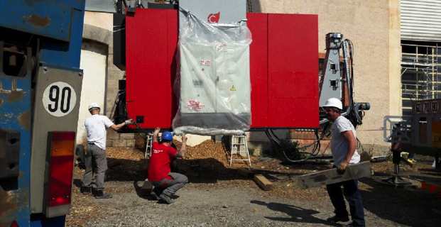 - La chaufferie est composée de trois chaudières, deux au bois et une au fuel. Les chaudières à bois étaient très vétustes et avaient été achetées d’occasion en 1992. La première ne marchait plus et était à l’arrêt depuis plus d’un an. La seconde était en fin de vie et nous avons croisé les doigts, tout l’hiver, pour qu’elle tienne jusqu’à aujourd’hui. Nous avons reçu, ce matin, une première chaudière neuve de 1 mégawatt et nous attendons la seconde de 2,5 mégawatts. Elles seront installées d’ici à la fin du mois de juillet. La chaudière fuel sera, aussi, renouvelée, mais n’aura, normalement, plus besoin de fonctionner, sauf si les deux autres tombent en panne.