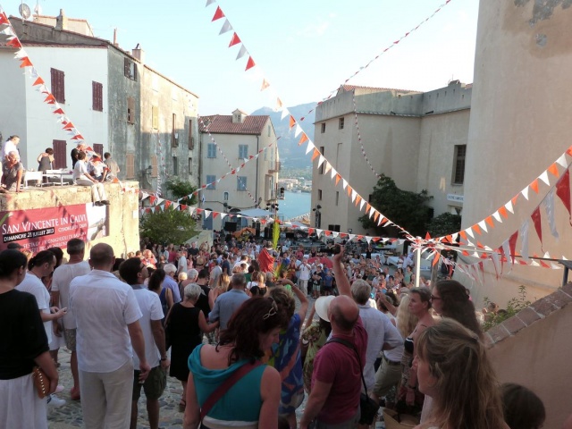 A l'initiative de la Municipalité de Calvi et des membres du syndicat des Vignerons de Balagne présidé par Camille Anaïs Raoust, une grande fête a été organisée à l'issue de la cérémonie religieuse. Sur la place d'armes, la présidente des vignerons souhaitait la bienvenue à tous et saluait la présence du maire Ange Santini, entouré de Françoise Sévéon, adjointe et Maria Luciani, conseillère municipale.