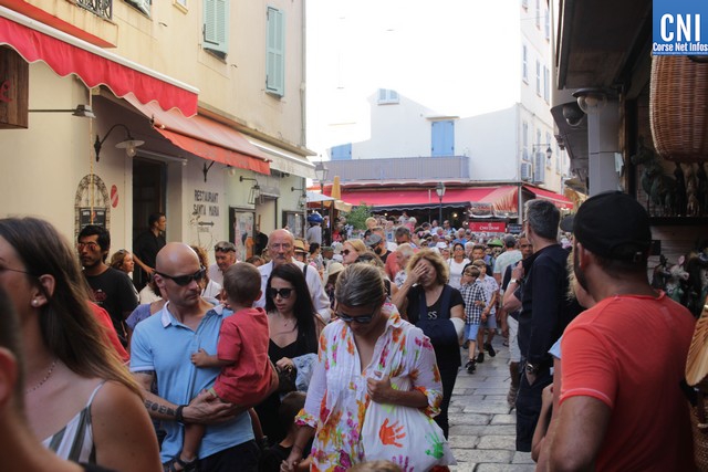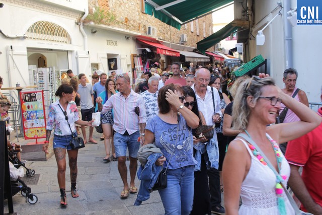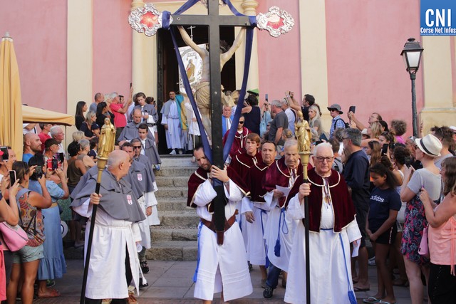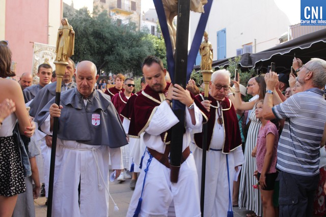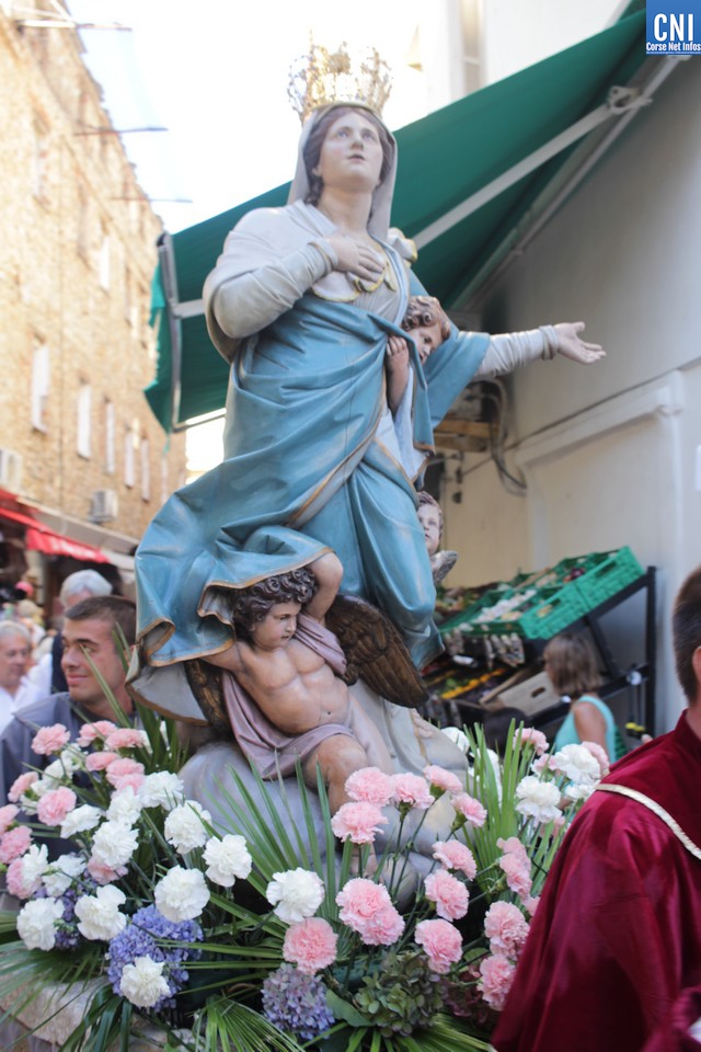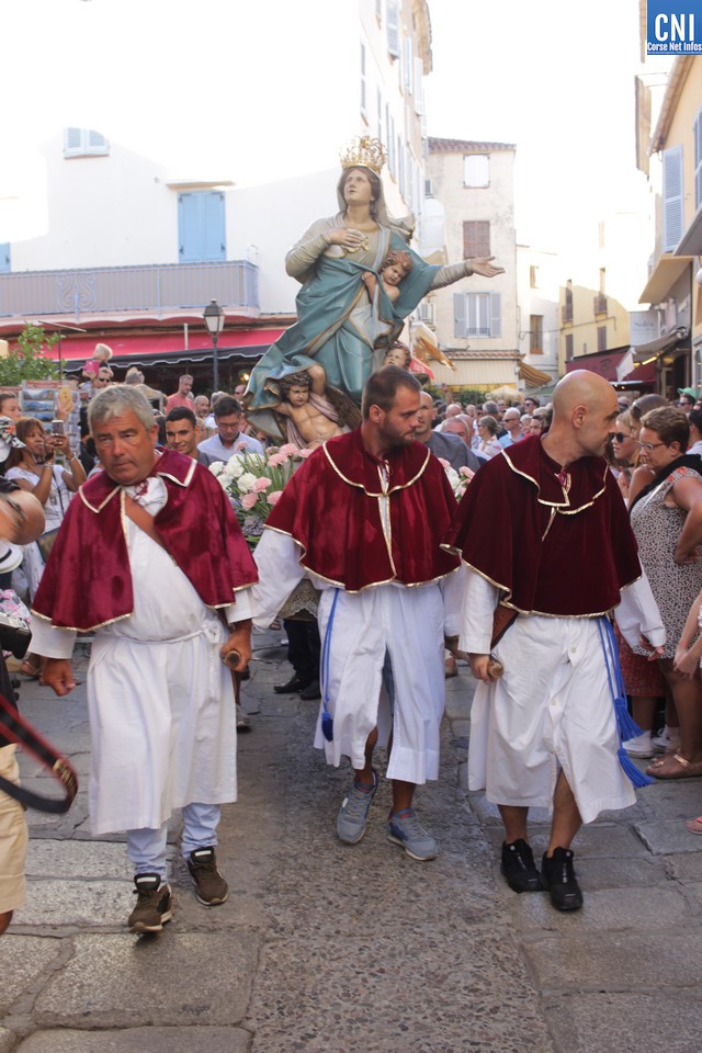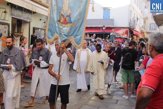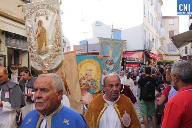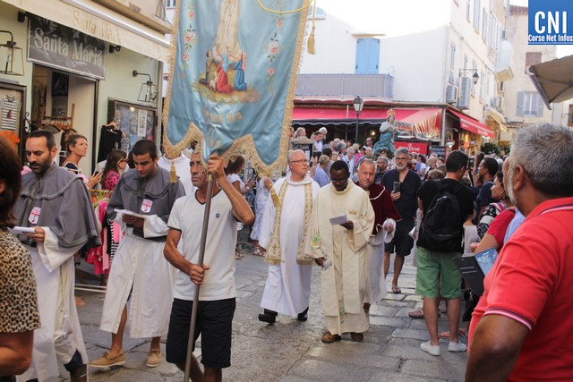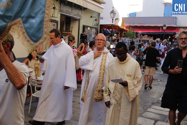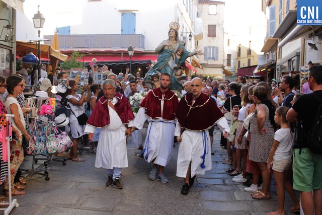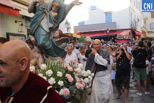 En tête les confrères de Saint Antoine et de Saint Erasme de Calvi mais aussi d'autres venus des quatre coins de la Balagne et les représentants de l'église alors que la Vierge Marie était portée par les confrères et que la foule de plus en plus nombreuse suivait dans la rue Clemenceau, avant d'emprunter les quais du port et faire une halte au môle pour une bénédiction.