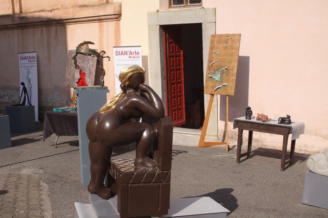 Avant de lever le verre de l'amitié, les élus et organisateurs inauguraient l'exposition du peintre et sculpteur Gabriel Diana, en l'église paroissiale.