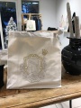 « J’ai une machine une tête à 15 aiguilles explique Christiane. Je peux broder jusqu’à 15 couleurs différentes sur un dessin. Je brode sur de la soie, du lycra du coton ou du cuir et sur différents supports, sacs accessoires, foulard, étoles, casquette, tapis ...J’utilise des aiguilles plus fines pour broder le cuir.Je travaille sur des selles de chevaux par exemple. Les produits phares du magasin sont les sacs et les pochettes qui peuvent servir de trousse à maquillage ou de toilette. »