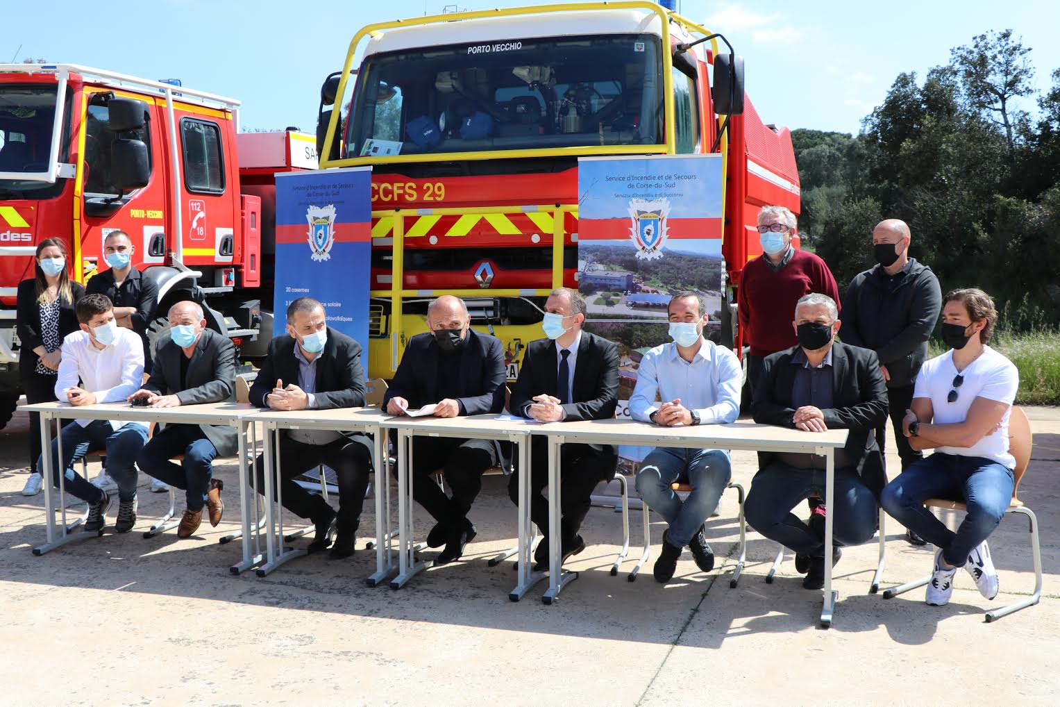 Ce faisant, le SIS Sudiste devient le premier service, non pas à l'échelle régionale, mais plus largement nationale à mettre en place une telle campagne. L'annonce officielle en a été faite cet après-midi à la caserne des pompiers de la Cité du Sel au cours d'une conférence de presse qui regroupait le maire de Porto-Vecchio, Jean-Christophe Angelini, Paul-André Colombani le député de la Corse-du-Sud, mais également, Pierre Poli et Paul Miniconi, respectivement président et vice-président du Service d'Incendie et de Secours de la Corse-du-Sud, Michel Giraschi premier adjoint de Porto-Vecchio et Petr"Anto Vesperini conseiller municipal, ainsi que Paul Antoniotti président de la société Corsica Sole.