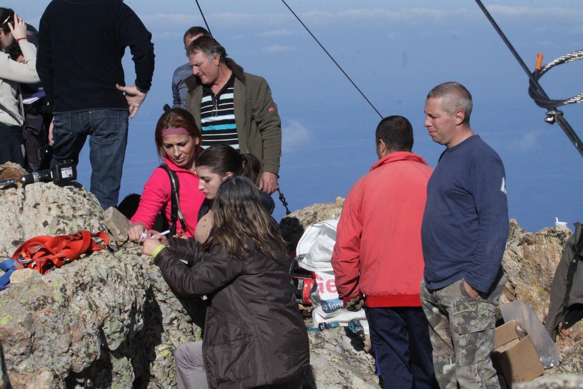 La photo souvenir pour immortaliser l’événement effectuée, il ne restait plus qu’à fixer une petite boîte en inox, dans laquelle sera glissé le premier cahier du sommet sur lequel ont été inscrits les commentaires de chacun. Il faut savoir que ces cahiers existent depuis la pose de la première fois et qu’ils sont remplacés et conservés à chaque fois par le Club Alpin Autrichien de Calvi qui en est le garant.
