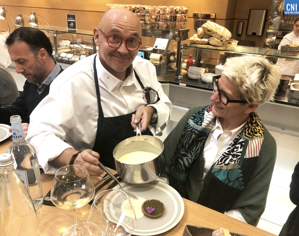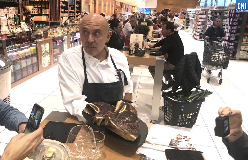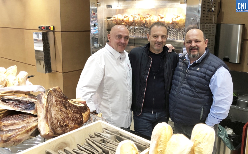 Richard Toix et François Padrona (au centre) :la cuisine étoilée au Leclerc de Baleone ( Photo Michel Luccioni)