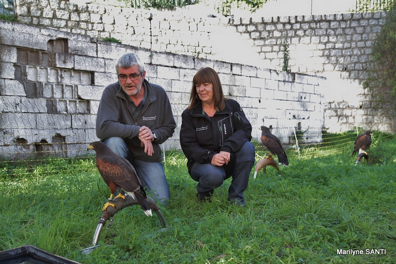 Une aire de repos en ville accueille les rapaces qui seront installés dès 9 heures le matin. Perches, blocs, bacs d’eau et alimentation sont mis à proximité pour leur créer un environnement accueillant, car le stress est naturellement présent chez tous les oiseaux.