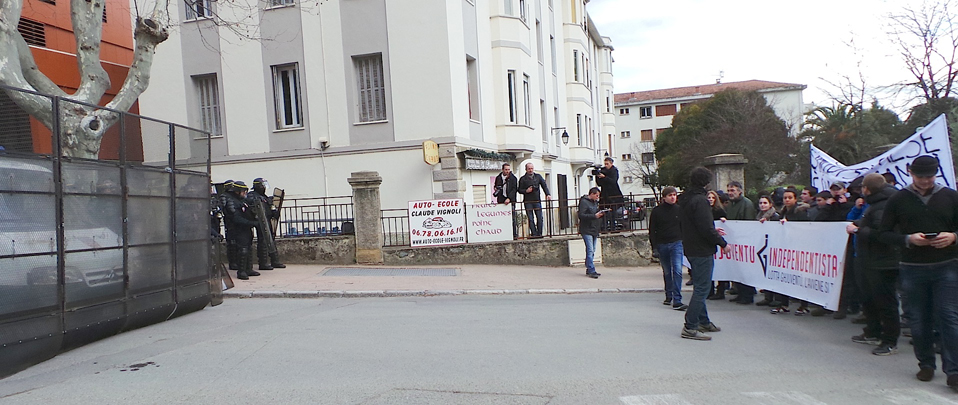 "Vi ringriazemu d'esse venuti numerosi a sta manifestazione. Avemu cumminca a marchja versu à sottu prefettura. Nous voudrions vous rappeler qu'aujourd'hui on ne manifeste pas pour un quelconque intérêt corporatiste ou individuel. Oghje si trata di marchja per a salvezza di u nostru populu par chi semu di stu paese é ci vulemù campà!"