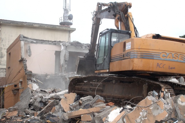Aujourd’hui, les engins s’attaquent à la démolition de la bâtisse par elle-même. Tous les gravats et matériaux vont être chargés sur des camions et évacués vers la SARL C.I.C.O à Borgo pour être recyclés.