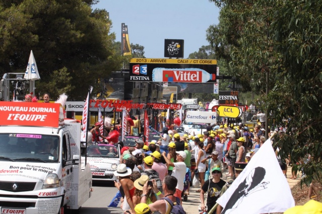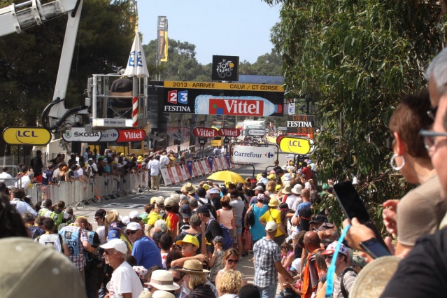 Malgré une très forte chaleur, ils étaient des milliers et des milliers à se presser sur le final de cette 3e étape du Tour de France, l'ultime en Corse. Sur la ligne d'arrivée, bien longtemps avant que la course n'arrive, les spectateurs se bousculaient pour ne perdre une miette du spectacle grandiose offert par la caravane et ensuite les coureurs avec à la clé un sprint final de toute beauté. Dans les tribunes et autour l'ambiance était extraordinaire, c'était vraiment la fête du Tour.