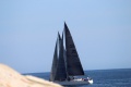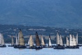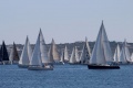 Les voiliers de course ont longtemps tourné autour du navire avant de se diriger jusqu'à là hauteur du centre amphibie pour se placer derrière la bouée de départ.
