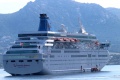 Dans la baie de Calvi l'imposant paquebot de croisière "Thomson Majesty', pouvant accueillir 1 400 passagers pour 600 membres d'équipage était là, prêt à assister au spectacle, tout comme les gens installés derrière la jetée du port ou encore sur les remparts de la citadelle.