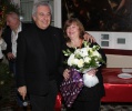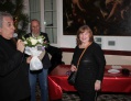 Un bouquet de fleurs et un cadeau lui étaient remis