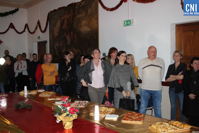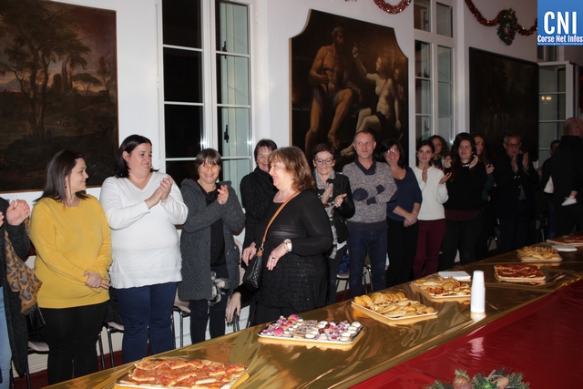 Avant d'inviter le personnel communal à s'approcher du buffet, Ange Santini saluait le départ à la retraite de Marguerite Gabrielli, après 20 années de bons et loyaux services en sa qualité d'agent de restaurant scolaire.