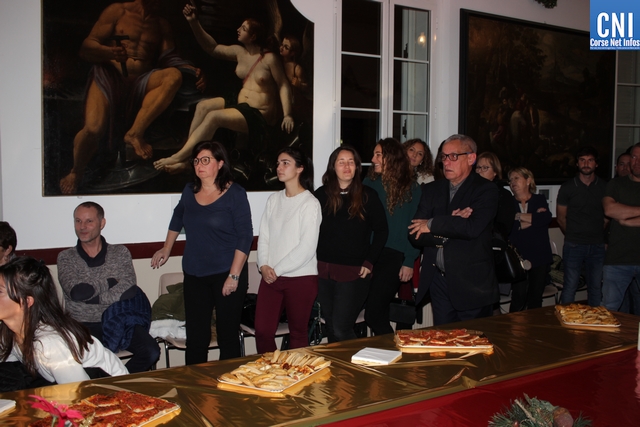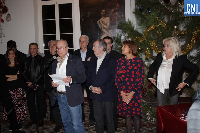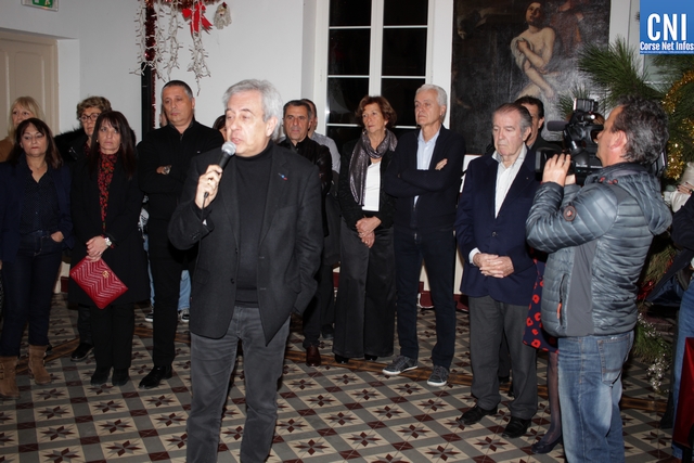 " Ce soir il ne s'agit pas de pleurer dans les chaumières, je pense que ni l'un ni l'autre auraient voulu cela. Il s'agit simplement d'avoir cette pensée pour eux, il s'agit simplement que nous les vivants pour qu'ils ne disparaissent pas tout a fait, nous en parlions, que nous continuions encore à en parler et puis, naturellement, il s'agit de nous souhaiter, pour nous et pour nos familles, que cette année 2019 soit meilleure, bien meilleure que celle qui s'est achevée, que nous n'ayons pas les uns et les autres à avoir la douleur de perdre des gens proches, plus ou moins proches, que nous ayons, que vous ayez collectivement la santé sans laquelle tout le reste n'est que dérisoire, n'est qu'illusion. Je vous souhaite en mon nom personnel, au nom de l'ensemble des élus qui m'entourent, une bonne et heureuse année 2019, surtout une bonne santé "A pace è a salute per tutti".