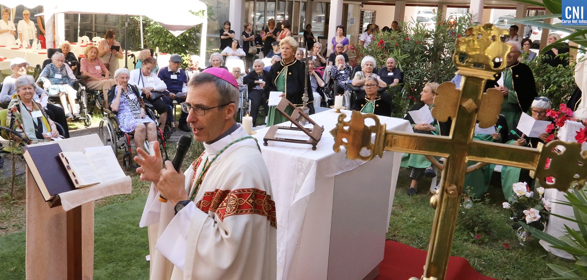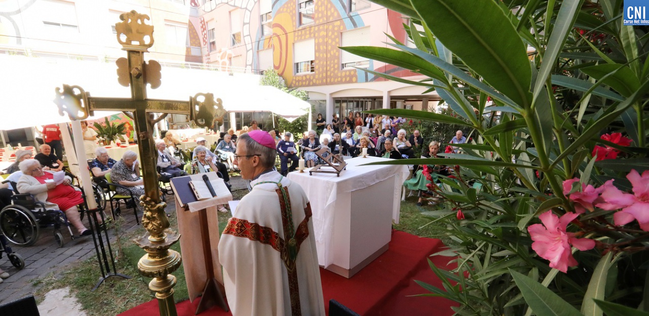 Monseigneur de Germay célébrant la messe dans les jardins de l'hôpital Eugénie / Photo Michel LUCCIONI pour CNI