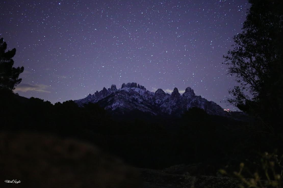 " La chappe de nuages se dissipe et le ciel redevient étoilé en Alta Rocca. Les aiguilles de Bavella, ankylosées par le froid, s'endorment dans leur manteau neigeux. La nuit chante à la montagne son refrain éblouissant " nous écrit Patrick Nicolaï