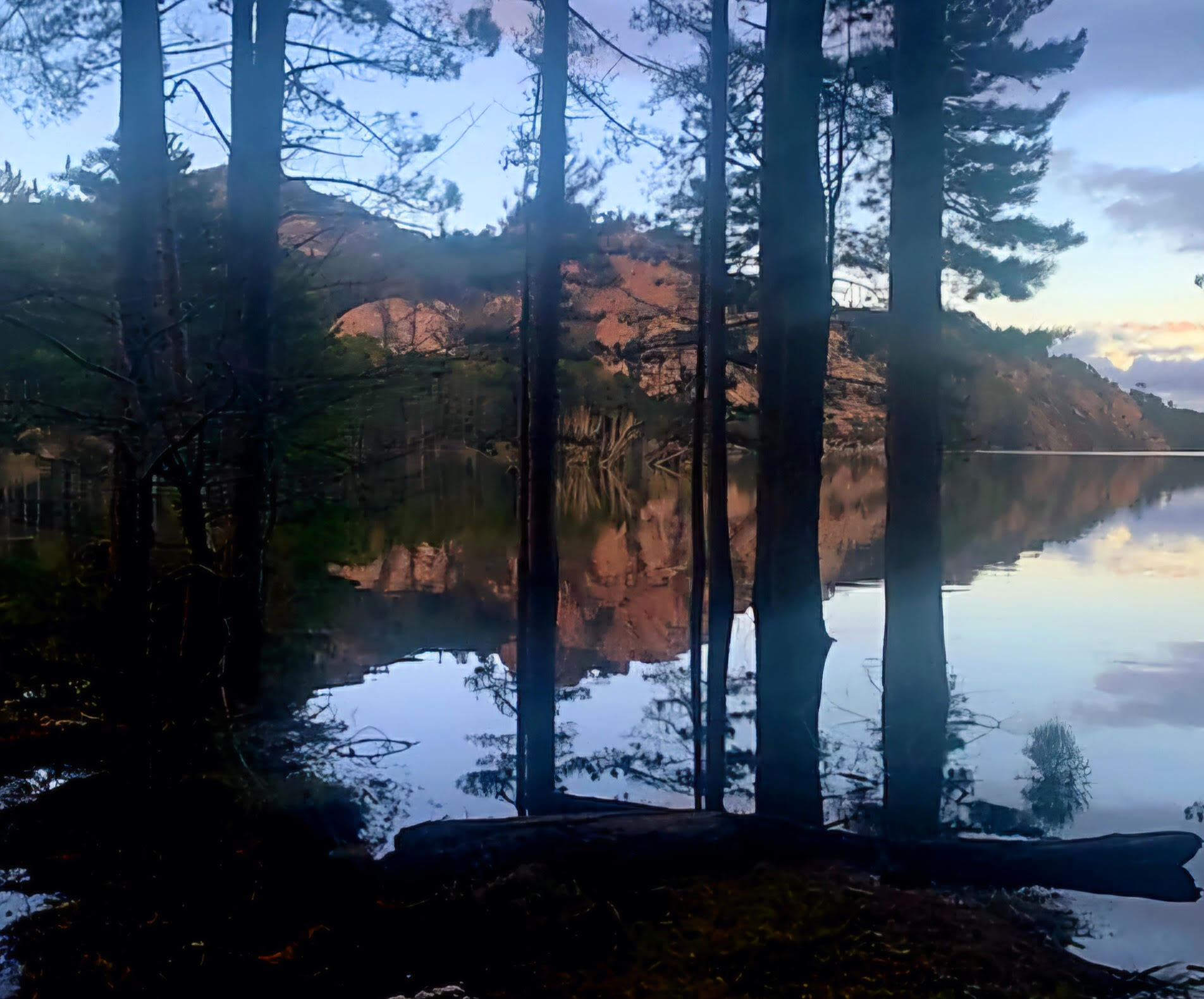 Le printemps est (officiellement) là. Et l'on a tourné la page de l'hiver. À son crépuscule, il éclairait de ses derniers rayons de soleil le lac de l'Ospedale. Et le jour déclinait sur la montagne, reflétée par les eaux sereines du lac. Un instant fixé par Sulennia Valli.