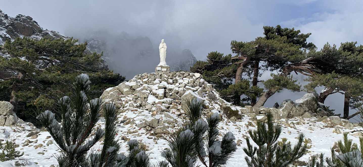 Notre-Dame des Neiges, la sainte patronne de Bavedda, les pieds enneigés et dans sa blancheur immaculée, n'est jamais apparue aussi belle que ces jours-ci aux promeneurs qui, comme Nadine Lovichi, ont pris de la hauteur à l'occasion d'une balade au col.