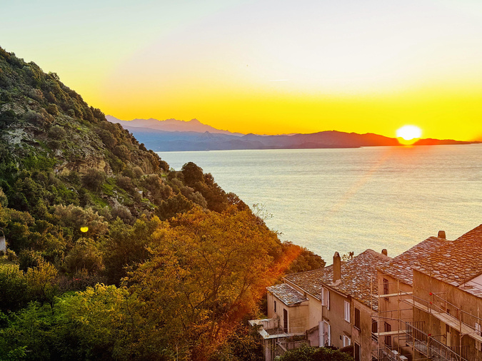 À Nonza, juste avant le dernier rayon de soleil du jour, le spectacle splendide de la nature, où les ors de l'automne et l'ultime rai oranger de l'astre solaire se confondent, laissent rarement indifférent l'œil du photographe.