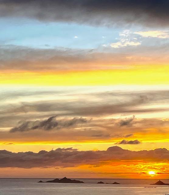 Ce lundi soir, le ciel s'est paré de mille et un couleurs au-dessus des îles Sanguinaires. Un magnifique kaléidoscope fixé ici de belle manière par