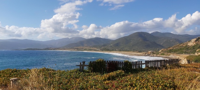 La belle baie de Sagone où la Méditerranée vient mourir en chapelets ourlés : l'image est de Serge Delavet.