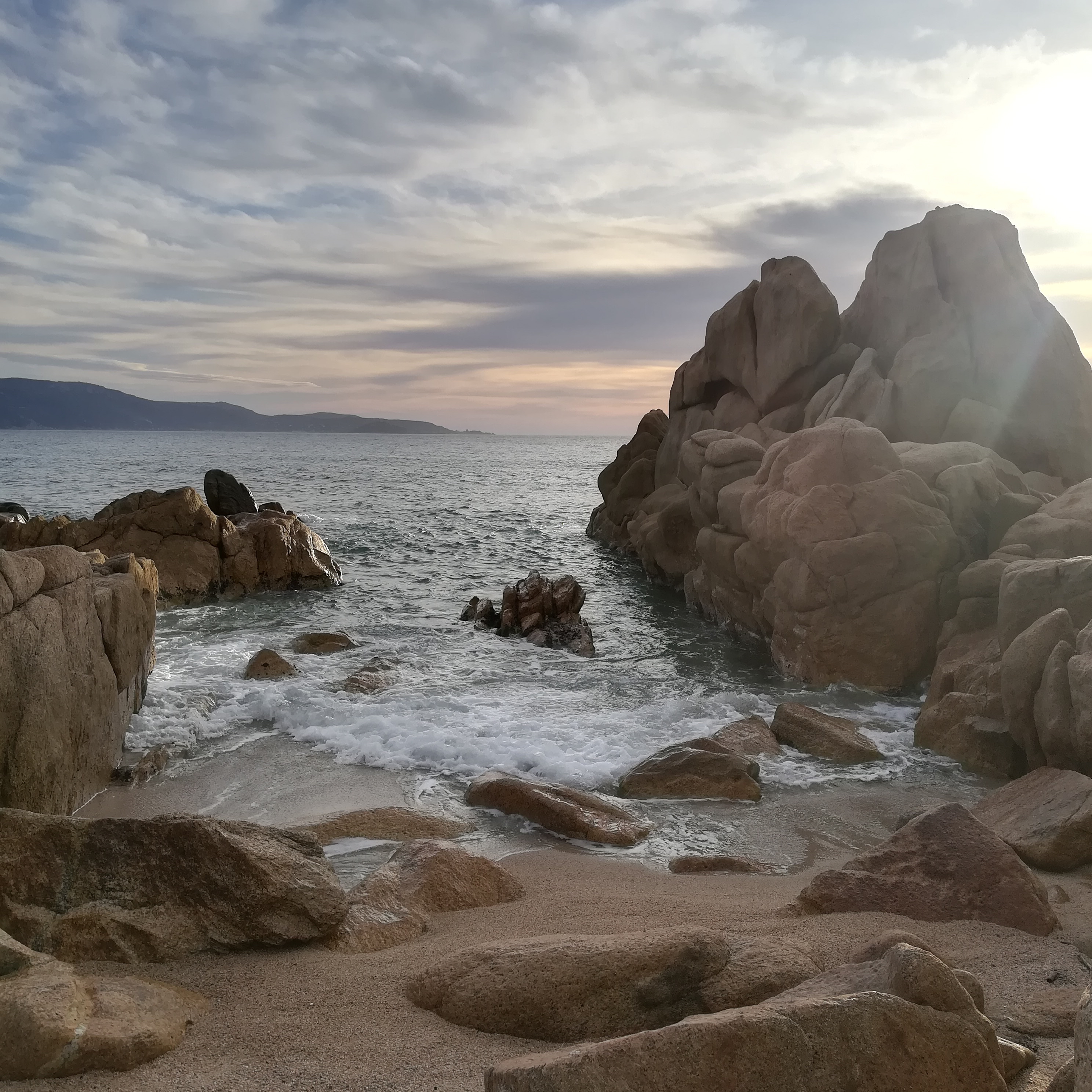Le sable rosé, la lumière basse et la mer turquoise... on aimerait bien être en juin pour pouvoir se baigner. La crique de la plage d'Abartello à Olmeto dans la région de Propriano en Corse-du-Sud a été sublimée par Hélène Carer.