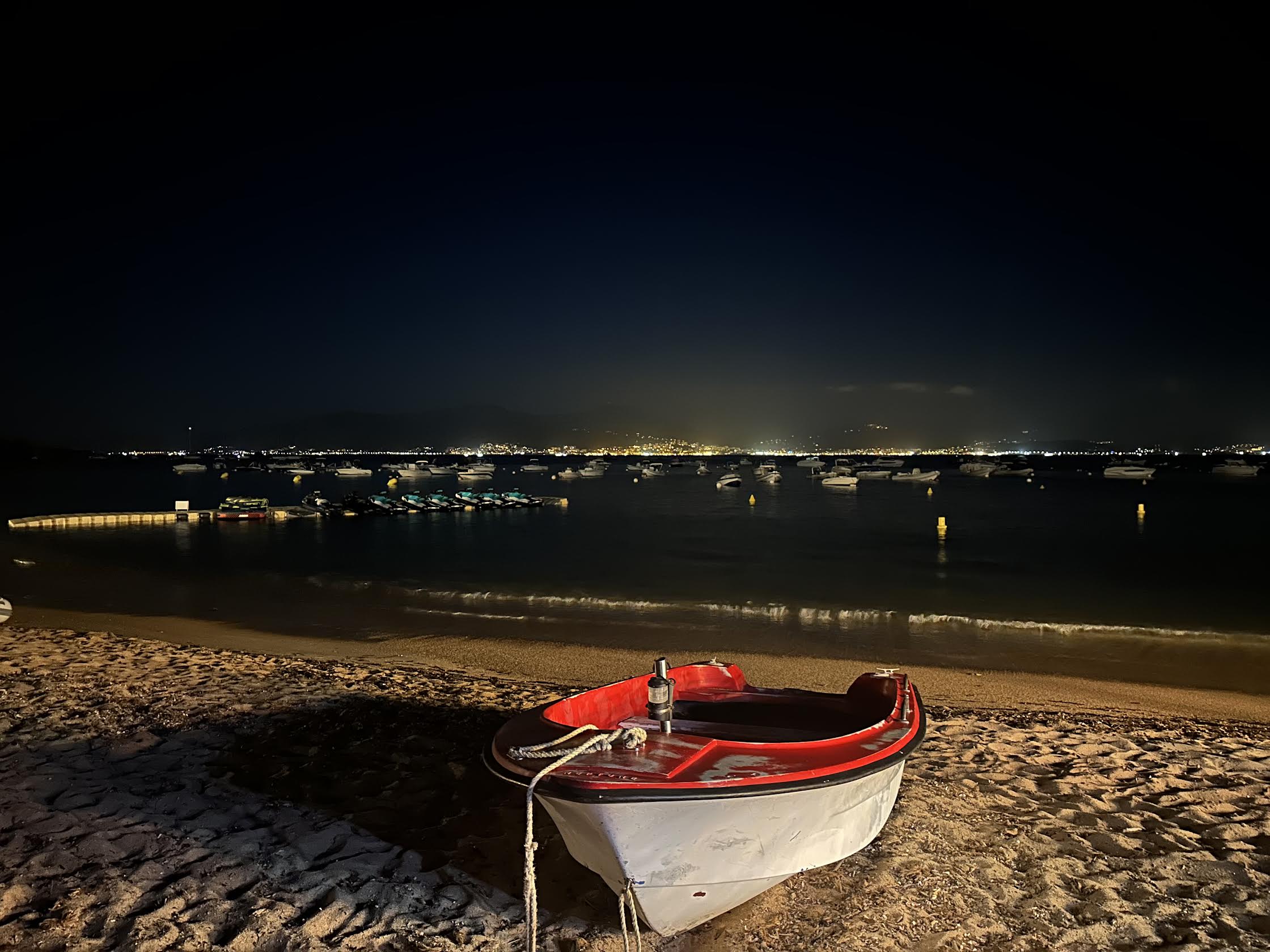 La photo du jour a été faite par Catherine Cataldi de... nuit depuis la plage de Stagnola, sur la rive sud du golfe d'Ajaccio avec, de l'autre côté du même golfe, les lumières de la ville impériale.