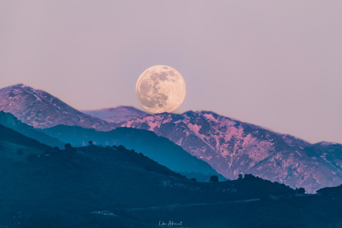 "Libre Autrement Photographie" a capturé il y a quelques jours, à Bastelicaccia, près d'Ajaccio, cette superbe image d'un lever de lune au moment où l'astre semble posé sur les montagnes de Corse-du-Sud.