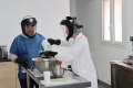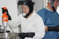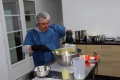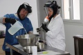 Patrick Ravel et Aurélie Barboza préparent avec minutie tout le matériel et produits nécessaires, alors que Sophie nous explique le processus de fabrication, insistant sur le fait que tout est réalisé à la main et de façon très artisanale, tout en respectant la législation de 2009 en matière de produits cosmétiques, avant de commenter les faits et gestes de Patrick Aurélie: