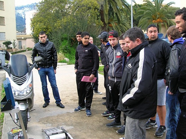 Et pour illustrer les multiples dangers relatifs au pilotage d’un scooter ou autres motos, une démonstration était réalisée devant l’entrée du centre des Cannes. A la manœuvre, Valère Duch, chargé de mission deux-roues motorisés du Département. Face à lui, une douzaine de jeunes de 14 à 17 ans écoutent le "M. Moto" de Corse-du-Sud leur expliquer, scooter et "curvomètre"* à l’appui, les nombreux dangers liés à la fois au pilotage mais également aux diverses modifications mécaniques souvent apportées par les adolescents, à des machines dont les caractéristiques ne sont pas toujours adaptées à recevoir.