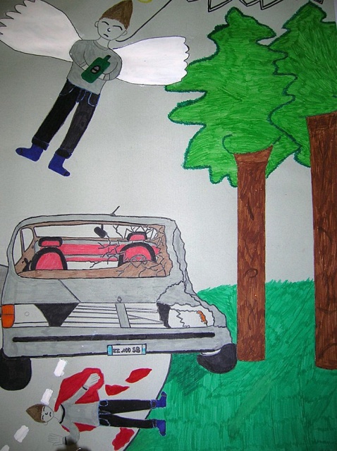 Ainsi, c’est une dizaine d’affiches qui ont été déposées hier, avec des visuels originaux et des slogans percutants. A l’image de cet ange qui s’envole, une bouteille à la main, au dessus d’une scène d’accident de voiture mortel, avec pour slogan : « l’alcool t’offre un moment de plaisir, mais au volant il te fera pas réagir !».