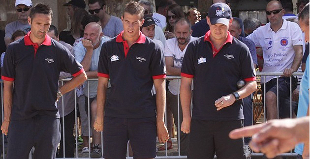 Bruno Le Boursicaud - Henri Lacroix, champions du monde en titre, associés à Michel Loy, s'inclinaient face à l'équipe Jean-Paul Lenoir - Sébastien Bracconi - Nestor Guevarra. Menée au score, proche de la défaite, cette triplette s'en remettait au jeune sociétaire de La Boule Calvaise Sébastien Bracconi. Avec beaucoup de sang-froid et de talent, celui que l'on surnomme affectueusement "Le gamin" frappait au bouchon et permettait à son équipe de s'ouvrir la route du succès. Autres victimes de cette journée: le Belge Claudy Weibel et le vainqueur du Master 2013 Damien Hureau !