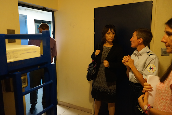 Une visite éclair commencée par celle du local de rétention administrative situé sur le site de l’aéroport, en présence de Gilles Repaire, directeur régional de la PAF en Corse. Des associations avaient signalé l’existence de ce local de rétention administrative et l’intérêt que sa visite représentait. D’une capacité de six places, il a accueilli 160 hommes et 3 femmes durant l’année 2014, le plus souvent des étrangers interpellés en situation irrégulière. A la différence des centres de rétention (CRA) comme ceux de Marseille, Nice ou Lyon il s’agit d’un équipement de petite capacité pour de courts séjours de 48 heures maximum. La députée insistera auprès du Directeur de la police de l’air et des frontières, la Commandante du Poste de police et le responsable du LRA, sur l’importance des conditions d’accueil et l’humanité dont ils devront collectivement faire preuve.