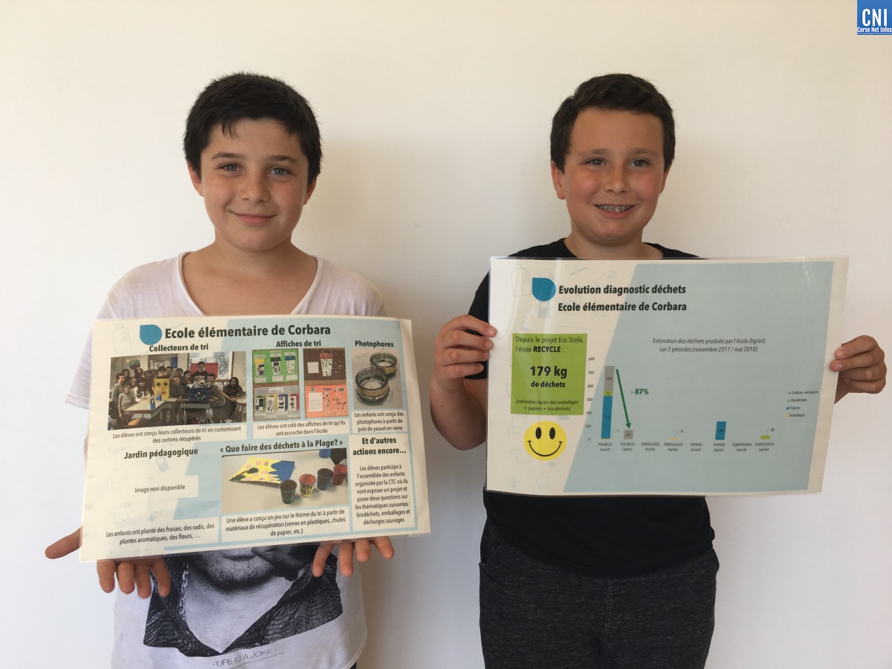 " Cette année, avec Ecoscola et le maître, nous avons appris à trier les dechets. Dans quelques années, sans le tri, la terre sera encore plus polluée. Alors si on voit quelqu'un qui ne trie pas, on sera là pour lui apprendre à le faire" ont expliqué Lisandru Savelli et François Orticoni.