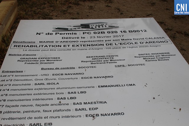 David Calassa rappelait que la réhabilitation de cette maison de maître datant du XIXe siècle, acquise par la municipalité en Janvier 1956, pour y abriter l'écoledu regroupement pédagogique intercommunal du bassin de vie fréquentée à ce jour par 55 élèves des communes d'Aregnu, Cateri, Sant'Antonino, Lavatoghju et Pigna, mais aussi la salle polyvalente, théâtre de nombreuses manifestations, était le projet phare de cette mandature.