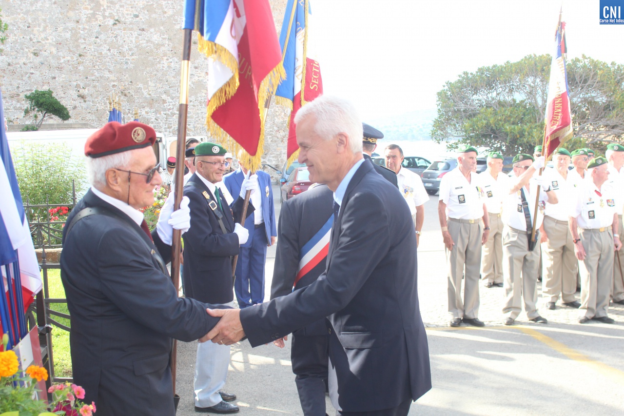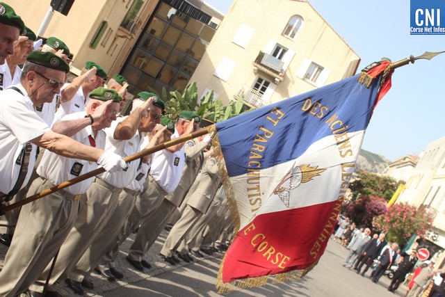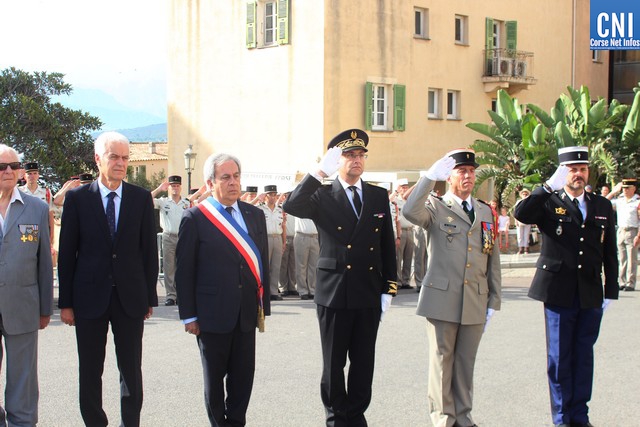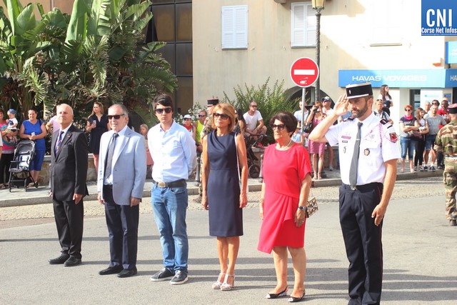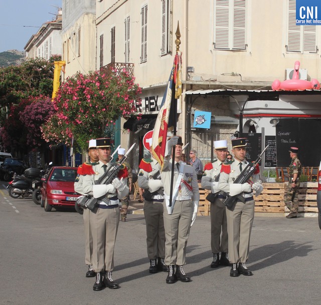 Les autorités rassemblées autour du maire de Calvi Ange Santini, de Jean-Louis Delpoux, adjoint au maire de Calvi, conseiller Territorial de Corse, Jérôme Seguy, sous-préfet de Calvi, du lieutenant-colonel Favrot, commandant le 2e REP par suppléance, du capitaine Pascal Hervé, commandant en second de la compagnie de Gendarmerie de Calvi et de Claude Deceuninck; Président de l'association des Anciens Combattants Calvi-Galeria rendaient les honneurs au drapeau.