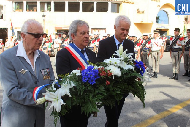 Deux gerbes étaient enfin déposées au pied du Monument aux Morts, l'une par le maire de Calvi, Ange Santini, entouré de son adjoint Jean-Louis Delpoux et du président des AC Claude Deceuninck et l'autre par le sous-préfet Jérôme Seguy, le commandant en second du REP, le liutenant-colonel Favrot et le commandant en second de la compagnie de gendarmerie, le Capitaine Pascal Hervé.
