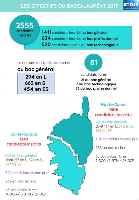 - Série L : L’académie de Corse a fini première dans la série L avec un taux de réussite de 96,6 %