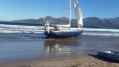 Il a fallu tout le savoir faire des deux pilotes et les nombreuses tractions alternées et simultanées des deux bateaux de sauvetage, pour finalement permettre au voilier de glisser gentiment et reprendre la mer.