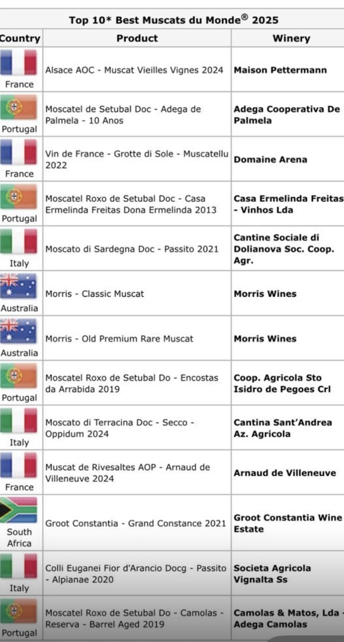 Le vin « Muscatellu - Grotte di Sole 2022 du domaine Arena classé parmi les meilleurs Muscats du monde.