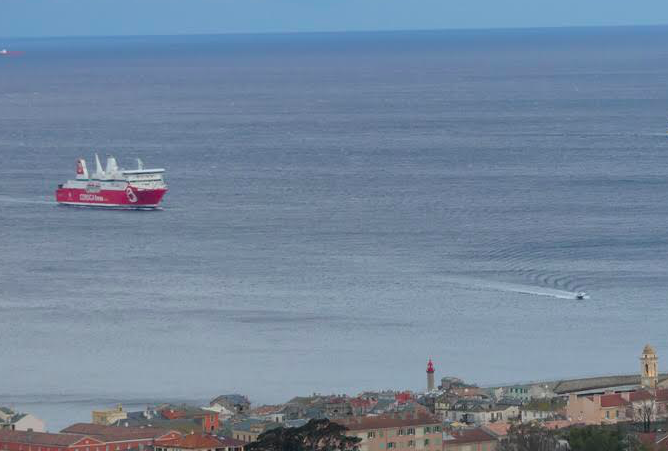 Le "Paglia Orba" se prépare à entrer dans le port de Bastia après 10 heures d'attente au large (Photo Marijo Costa)