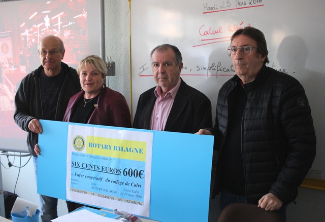 Il était 11h30 ce mardi lorsque les membres du_ Rotary Calvi-Balagne se sont rendus dans une classe du collège Jean-Félix Orabona pour remettre une chèque d'un montant de 600€.