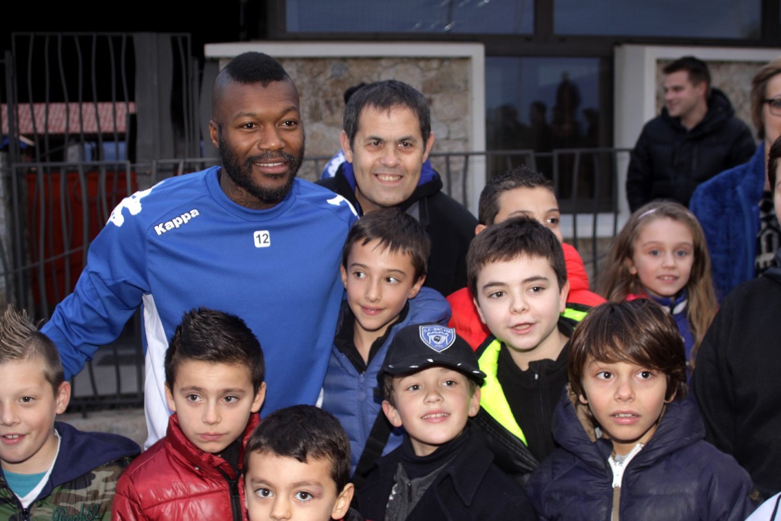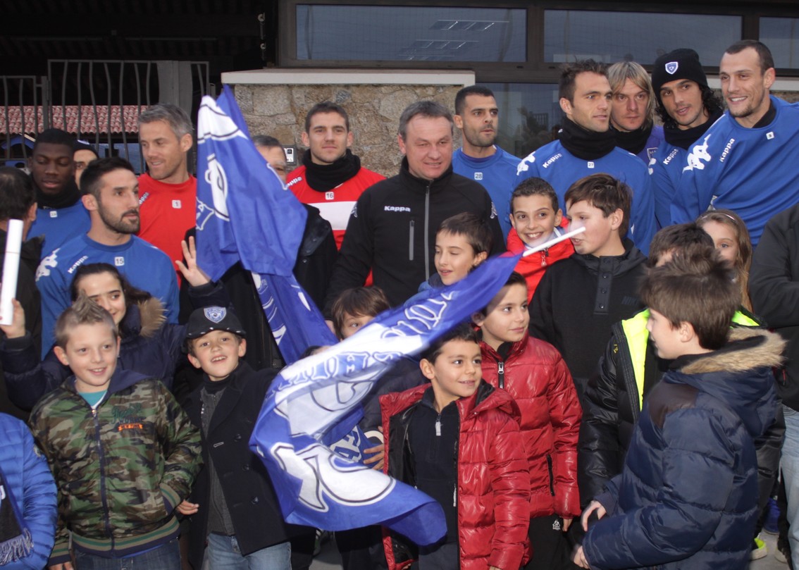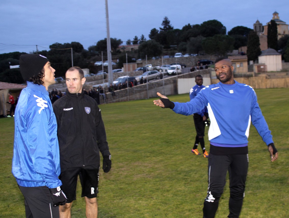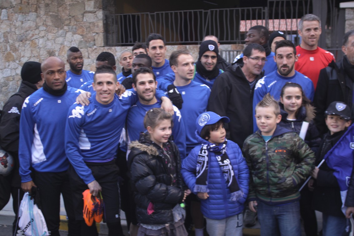 Au stade du complexe sportif Saint-François, les joueurs étaient précédés d'une partie du staff avec à sa tête le très populaire Jo Bonavita. A 17 heures très précises, le bus avec le coach, les joueurs et techniciens arrivait. Comme on pouvait s'en douter, tout le monde voulait voir Djibril Cissé. Coopératif, Frédéric Hantz acceptait que ce dernier et les joueurs posent pour la photo avec les supporters, avant de pénétrer sur la pelouse. Dans le rond central, le coach réunissait les joueurs pour dire en quelques mots ce qu'il attendait d'eux.