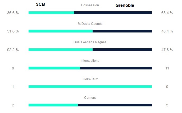 SCB : Placide – Vincent (c) – Salles Lamonge(Talal 86ème) – Magri (Santelli 75ème) – Ducrocq (Roncaglia 90+3)– Kaïboue – Van Den Kerkhof – Ndiaye – Alfarela (Robic 90+3) – Sainati – Tavares (Schur 86ème) .