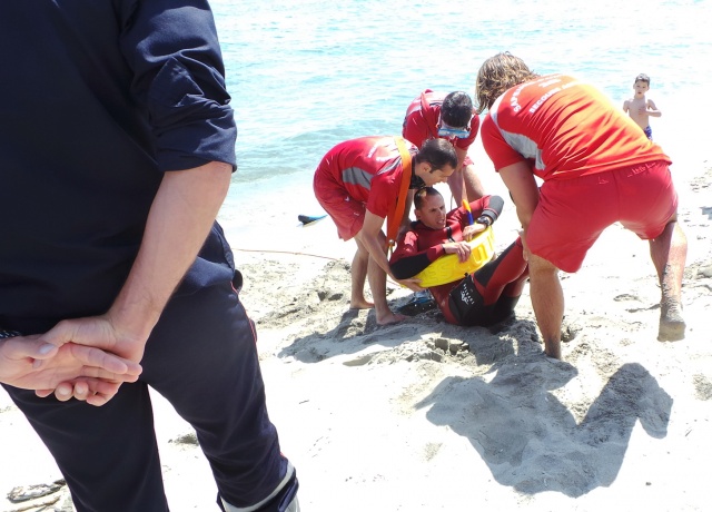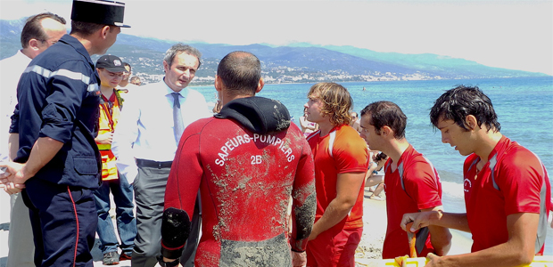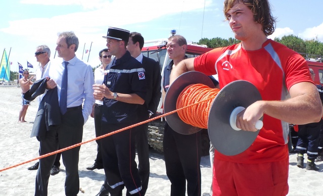 Auparavant le préfet, qui s'était déplacé de la plage de l'Arinella à celle de la Marana à bord du véhicule chenillé, en compagnie de son directeur de cabinet Jérôme Guerreau, de Pierre Guidoni, président du Sdis, Ange-Pierre Vivoni, vice-président et du colonel Charles Baldassari, directeur, s'était intéressé à un execice effectué sur la plage par les sauveteurs du pôle nautique du Sdis.
