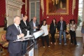Après les salutations et les présentations individuelles c’est dans un discours que Simon Renucci a remercié les protagonistes du clan des divorcées pour leur retour dans la cité impériale. Il a exprimé son bonheur de recevoir des acteurs qui font entrer le bonheur dans le cœur des gens et qui par le rire génèrent des élans de joie. Mr le maire a souligné la part de magie dans ces prestations qui traversent tous les temps et tous les ages. S’adressant aux acteurs il les remercie de faire basculer le temps d’une soirée, les spectateurs dans le camp du rire, d’aider les maux à s’éloigner. Il conclut en soulignant que cette pièce est également un hommage rendu aux femmes.