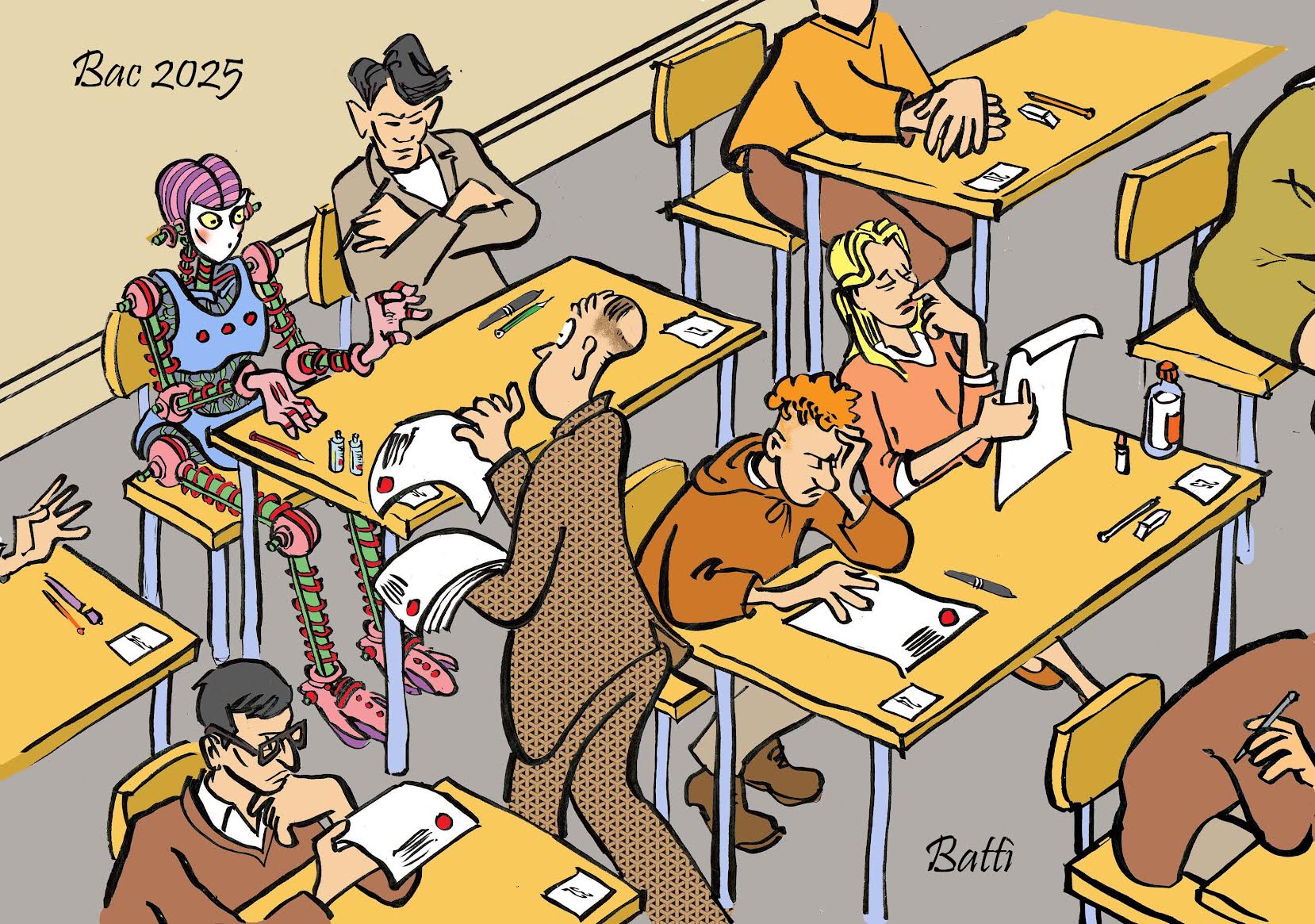 Le dessin de Battì : Bac 2025, l’IA planche, les élèves rament