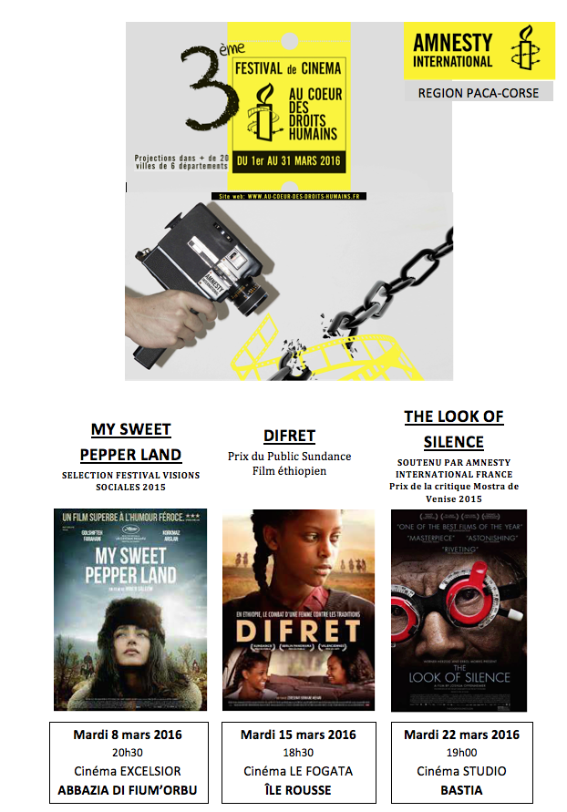 Pour la première fois en Corse, dans trois lieux de projection, le Groupe local basé à Folelli, vous proposera trois films qui sont symboliques et justifient les actions internationales de l’organisation militante .
