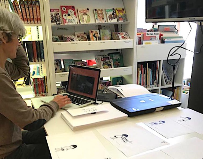 Quand Pénélope Jossen sort un livre, elle le présente régulièrement à la médiathèque de Castagniccia : "je collabore depuis quelques années avec Françoise Ducret, la responsable de la programmation culturelle. Après la parution d'un nouvel ouvrage, nous montons une exposition, à travers laquelle les visiteurs peuvent voir les croquis préparatoires et les planches du livre. Ensuite, on organise différents ateliers avec mes lecteurs. Ces échanges sont très importants car ils montrent comment on crée un livre, j'explique les nombreuses étapes de la création de l'objet livre, les enfants sont très intéressés et ça me permet aussi de m'enrichir de leurs remarques. Moi, c'est la technique et eux la justesse du trait, je me nourris de ces échanges." explique l'auteure et illustratrice de littérature jeunesse, qui vient de sortir son dernier ouvrage Le feu paru aux Editions L'école des loisirs.
