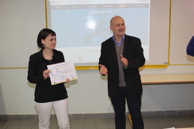 Le Label de qualité européen récompense les enseignants qui ont mené d’excellents projets eTwinning et qui ont déjà reçu un label de qualité national après une évaluation approfondie par une commission d’experts pédagogiques, ce qui est le cas de la récipiendaire.