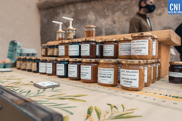 Un peu plus loin, Anne-Marie Savelli propose son brocciu, ses tartes, fiadone, Migliacci, Moelleux au chocolat.... Eric Duvermy, apiculteur propose lui son miel et autres produits.